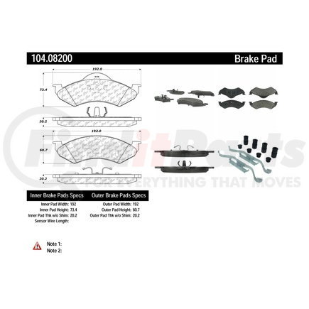Centric Parts, Inc. 104.08200 Semi-Metallic Brake Pads