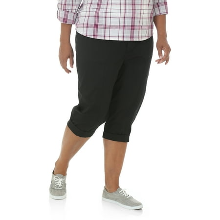 <br /> <b>Riders by Lee Women's Plus Utility Cargo Pocket Skimmer Pant</b> <ul> <li>Midrise fit</li> <li>Sits slightly below the waist</li> <li>Rib knit waistband with elastic</li> <li>20 1/2" Inseam unrolled</li> <li>18 1/2" Inseam rolled with button tabs</li> <li>Front patch pockets</li> <li>Back patch pockets</li> <li>Decorative stitching on front</li> </ul><p>Country of Origin: Imported