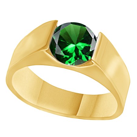 <ul> <li>Metal : Yellow Gold Plated Silver With 925 Sterling Stamp</li> <li>Stone : Simulated Green Emerald</li> <li>Stone Color : Green, Stone Clarity : VVS</li> <li>Stone Shape Type : Round Brilliant</li> <li>Stone Setting Type : Bar</li> </ul>