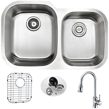 Anzzi, KAZ3220-044, , Moore Undermount Stainless Steel 32 In Double Bowl Kitchen Sink And Faucet Set With Sails Faucet In Polished Chrome