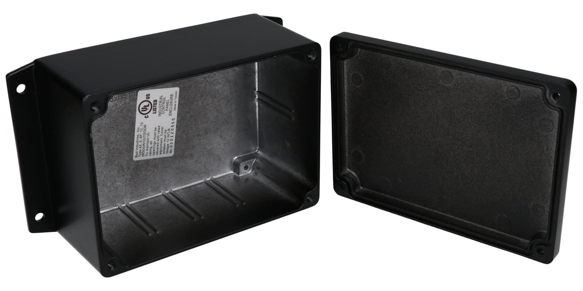 - 0.09” External mounting brackets allow the box to be mounted on a wall or panel without having to remove the cover and exposing internal components to the environment