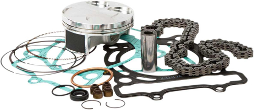 - Specs: Top End Piston Kit, Compression Ratio: 13.5:1, Cylinder Bore: 77.000, Piston Diameter: 76.960, Displacement: 250.00, Notes: Top end piston kit includes: piston, rings, pins, circlips, top end gaskets, and cam chain
