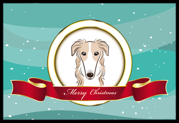 Caroline's Treasures BB1538MAT Borzoi Merry Christmas Doormat 18x27 Front Door Mat Indoor Outdoor Rugs for Entryway, Non Slip Washable Low Pile, 18H X 27W