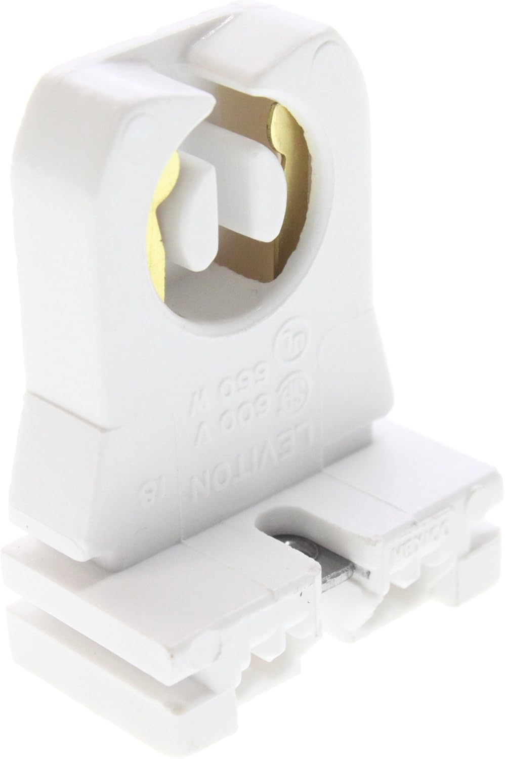 Leviton® Lampholder, 660 watt Lamp, 600 volt, Medium Bi-Pin Base, Slide-On Mounting, 1.68 Inch Overall Length, 1-1/4 Inch Overall Width, 0.72 Inch Overall Depth
