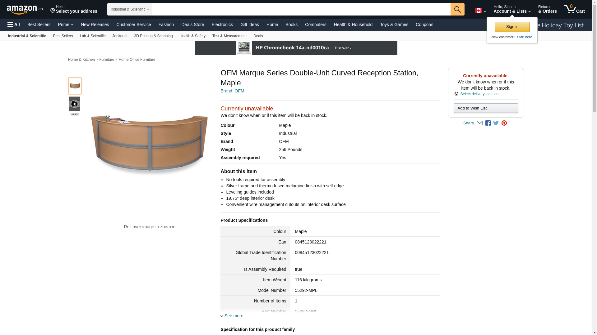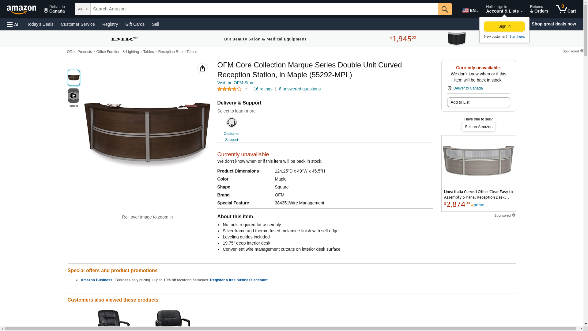 OFM Marque Series Double-Unit Curved Reception Station, Maple