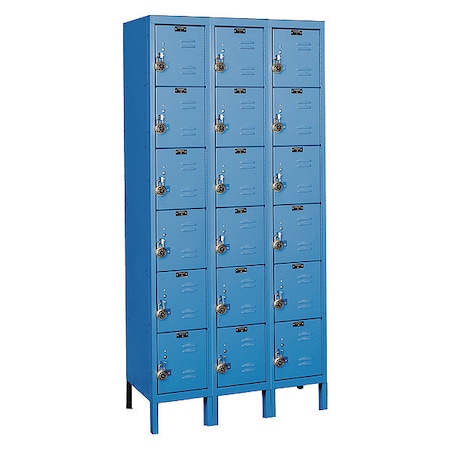 Hallowell® Ready-Built 6-Tier 18 Door Locker, 36"W x 12"D x 78"H, Blue, Assembled