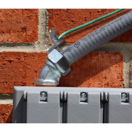 - 2in 45 degree connectors with insulated throats and grounding lugs are used in both indoor and outdoor locations on 2in flexible metallic liquid tight conduits when copper or aluminum jumper installations are required.