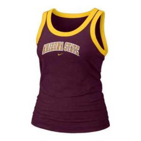 100% cotton women's tank by Nike. Sporty tank with soft cotton binding at neck and armholes. Soft-hand screen print team name and Nike swoosh stacked at center front chest. PLEASE NOTE: Nike woman's clothing is junior sizing.