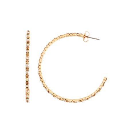 14KT Gold Plated 45mm J-Hoop Earring with Choice of Color Alternating Crystals