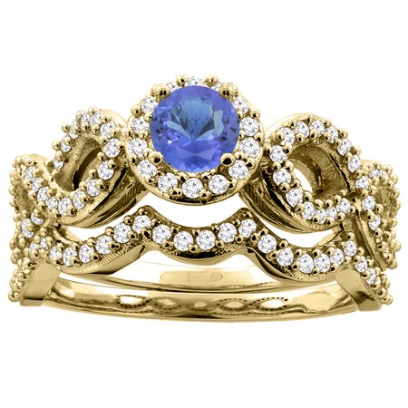 10K Yellow Gold Natural Tanzanite Engagement Halo Ring Round 5mm Diamond 2-piece Accents, sizes 5 - 10