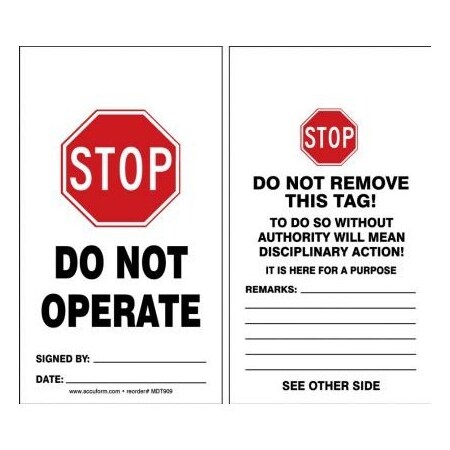 Order MDT909PTP by Accuform RP-Plastic Safety Tag "Stop Do Not Operate" - US Mega Store