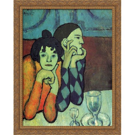 Two acrobats (Harlequin and his companion) 28x34 Large Gold Ornate Wood Framed Canvas Art by Pablo Picasso