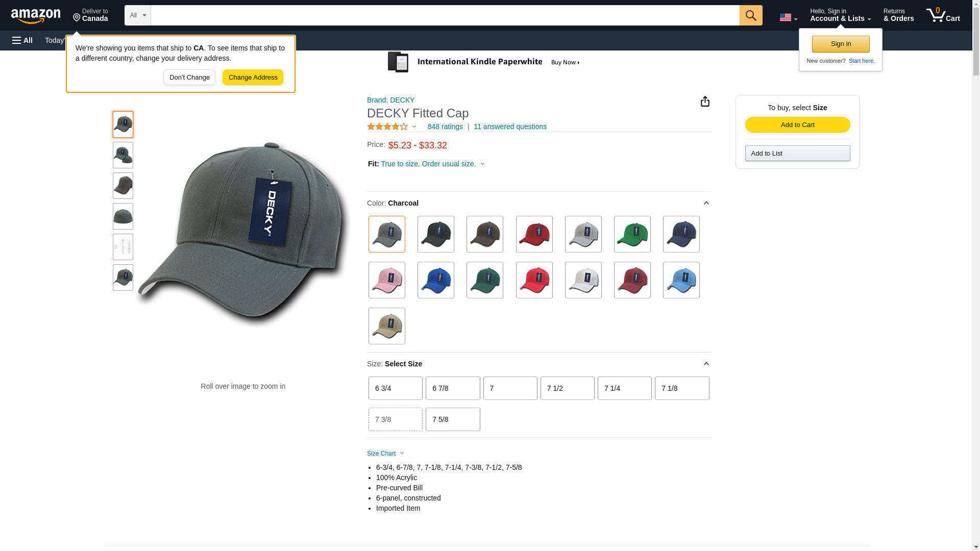 DECKY Fitted Cap, Charcoal, 7 5/8