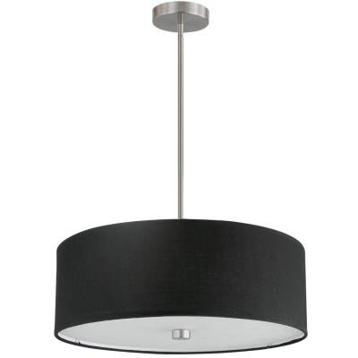 4 Light Incandescent Pendant Satin Chrome with Black Shade