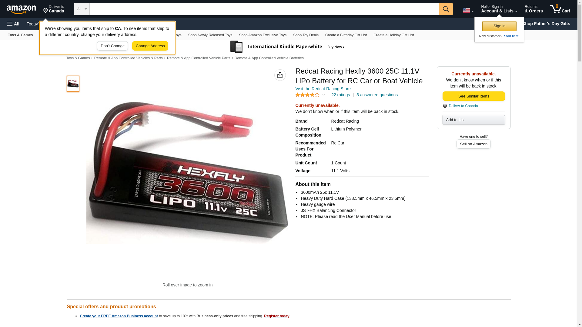 - 3600mAh 25c 11.1V