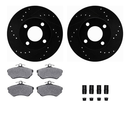 Dynamic Friction Company Front Brake Rotors-Drilled and Slotted-Black with 5000 Euro Ceramic Brake Pads includes Hardware 8612-73015