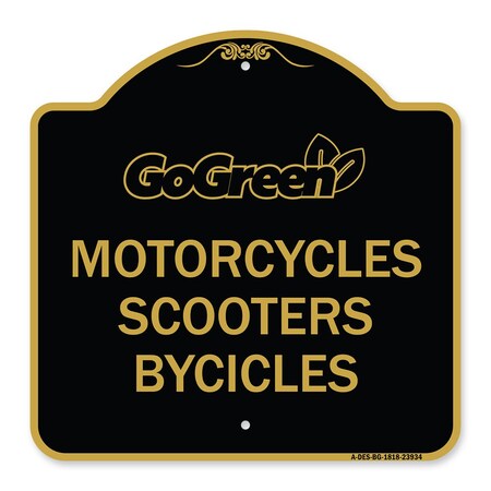 Go Green Sign Go Green-Motorcycles Scooters Bicycles, Black & Gold Aluminum Architectural Sign