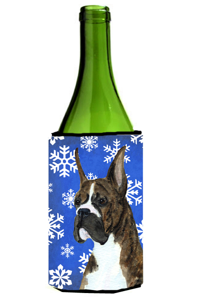 Caroline's Treasures SS4646LITERK Boxer Winter Snowflakes Holiday Wine Bottle Hugger Bottle Cooler Sleeve Hugger Machine Washable Collapsible Insulator Beverage Insulated Holder
