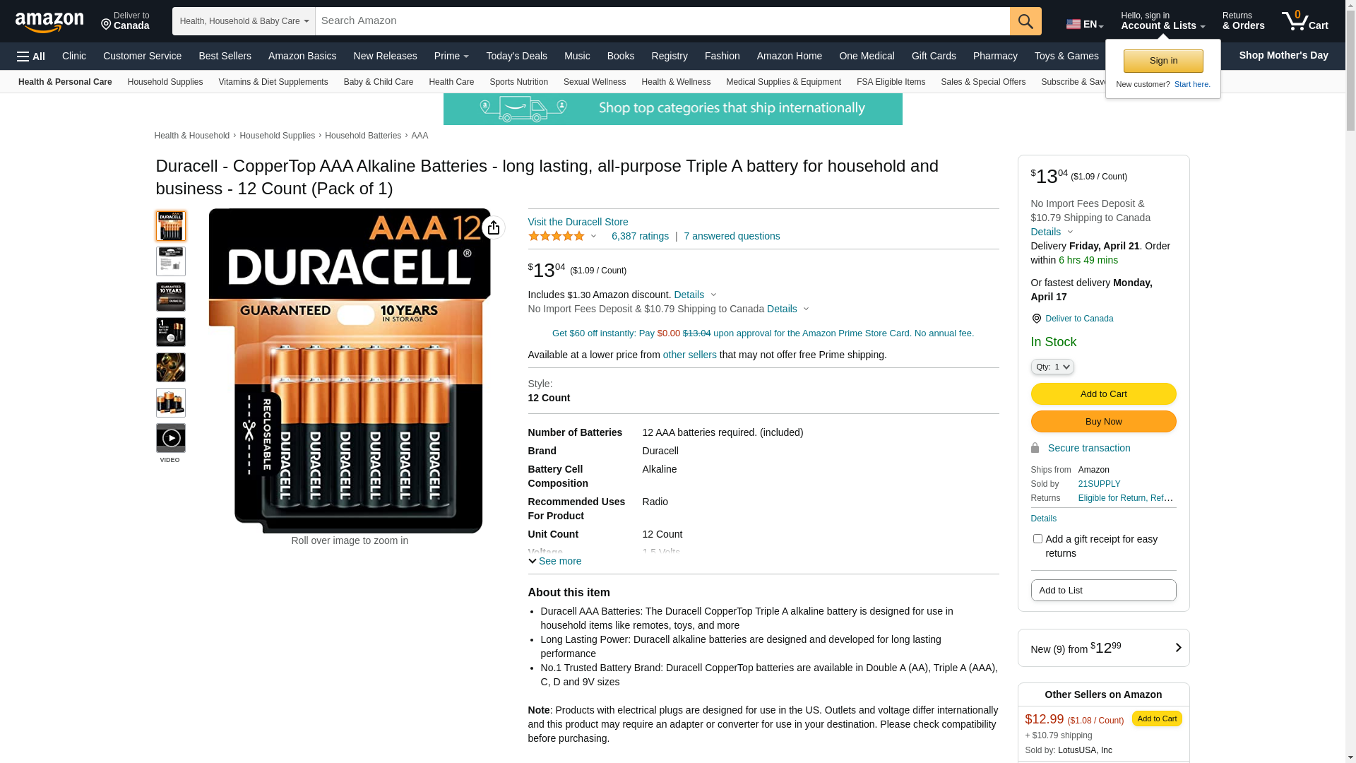 Duracell - CopperTop AAA Alkaline Batteries - long lasting, all-purpose Triple A battery for household and business - 12 count