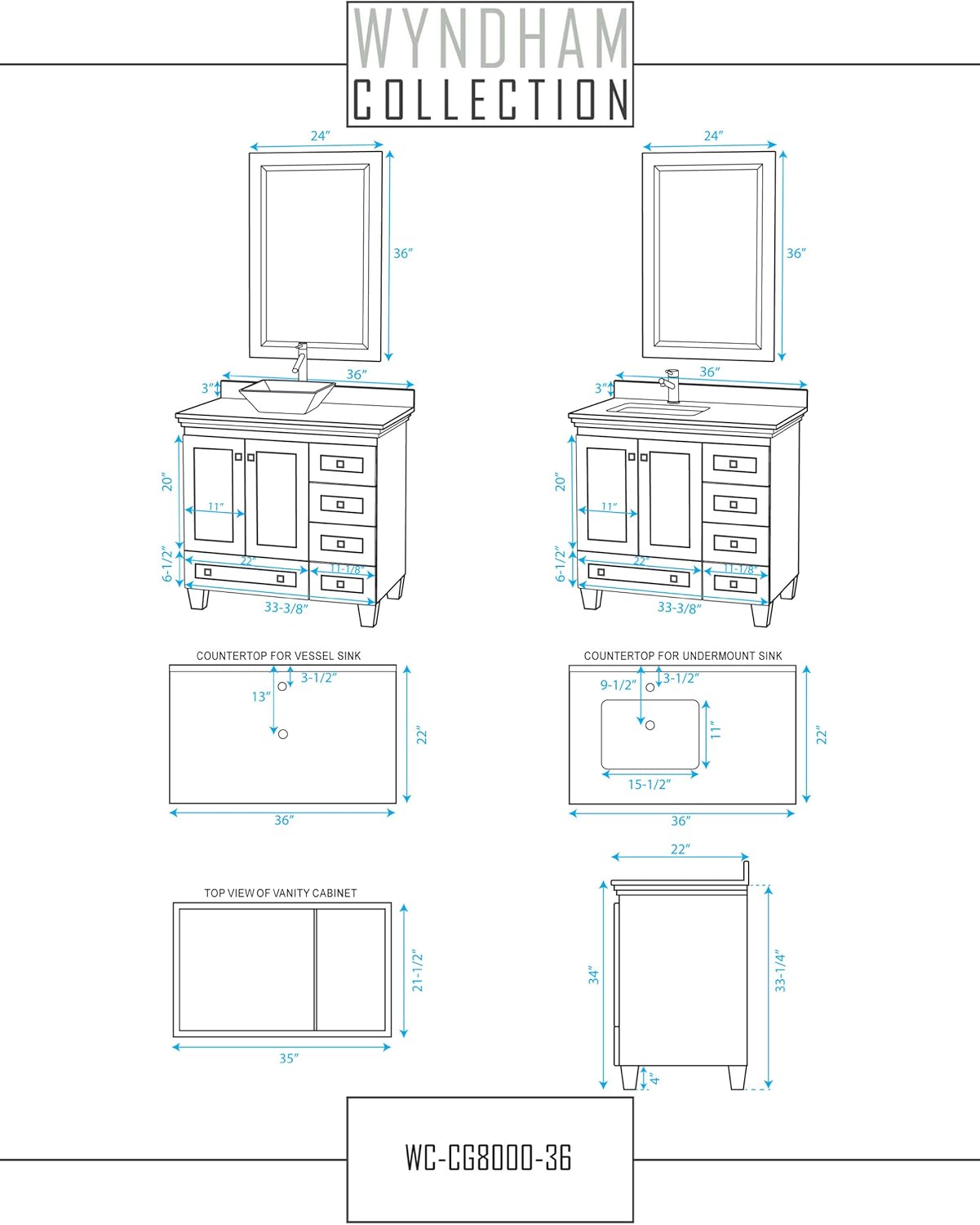 Wyndham Collection Acclaim 36" Single Bathroom Vanity in White, Ivory Marble Countertop, Pyra Bone Porcelain Sink, and No Mirror