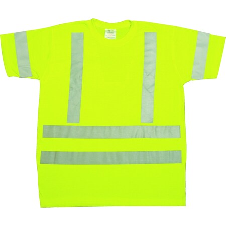 Mutual 96002 High Visibility Modacrylic ANSI Class 3 Durable Flame Retardant Safety Tee Shirt with 2" FR Reflective Stripes, 4X-Large, Lime