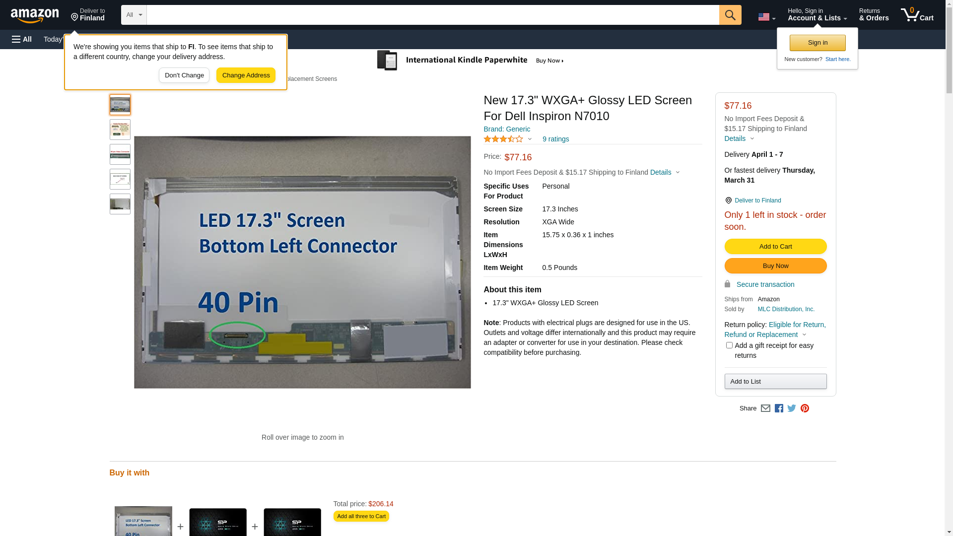 New 17.3" WXGA+ Glossy LED Screen For Dell Inspiron N7010