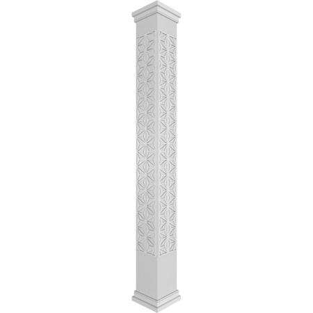 Ekena Millwork CC1009ENHMPPRPR Craftsman Classic Square Non-Tapered Hampton Fretwork Column w/ Prairie Capital & Prairie Base, 10"W x 9"H