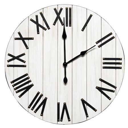 Elegant Designs HG2004-WWH Handsome Rustic Farmhouse Roman Numerals 21" Wood Wall Clock, White Wash