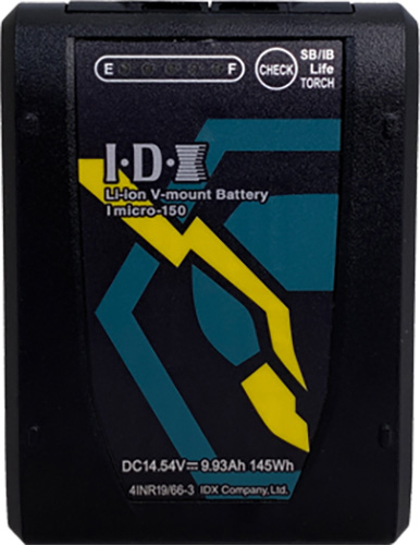 The IDX Imicro150 is the smallest battery pack in the world at this capacity Rated at 145Wh the Imicro150 meets the passenger aircraft carryon limit while remaining useful in many diverse applications The Imicros size is beneficial for users with small equipment and gimbal set ups The Imicro150 also includes two onbattery DTap outputs Future accessories will make the Imicro Series your new goto setup Features. Capable of handling up to 14A loadsDagger. 145Wh capacity. Meets passenger aircraft travel regulations. 1 100W DTap Output unregulated. 5 Power Indicator LEDs displaying 10 increments. Battery circuit protection ensures the Imicro150 is fully protected against common causes of battery misuse guarding against over charge over discharge over current and exposure to high temperatures. 11V auto cutoff prevents overdischarging while load is applied. Fully compatible with all ENDURA VMount Battery chargers and accessories. Environmentally friendly and recyclableSpecifications. Battery Capacity 145Wh 144V 99Ah. MaxOutput Voltage 168V DC. Nominal Voltage 145V DC. Maximum Discharge Current 14A . DTap 100W each. End Voltage 11V. Battery Protection Over charge Over discharge Over current Thermal protection. Ambient Temperature to Charge 32 to 104F 50 to 86F. To discharge 4 to 113F 50 to 104F. To store 4 to 122F less than 1 month. Dimension WxHxD 28 x 38 x 27. Weight 18 lbs