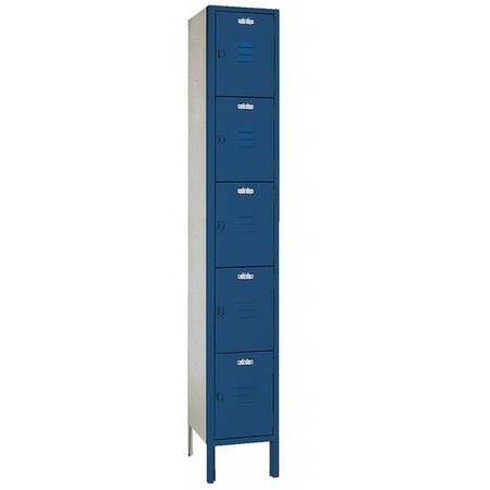 Box Locker, 12" W, 12" D, 66" H, (1) Wide, (5) Openings, Ocean Blue