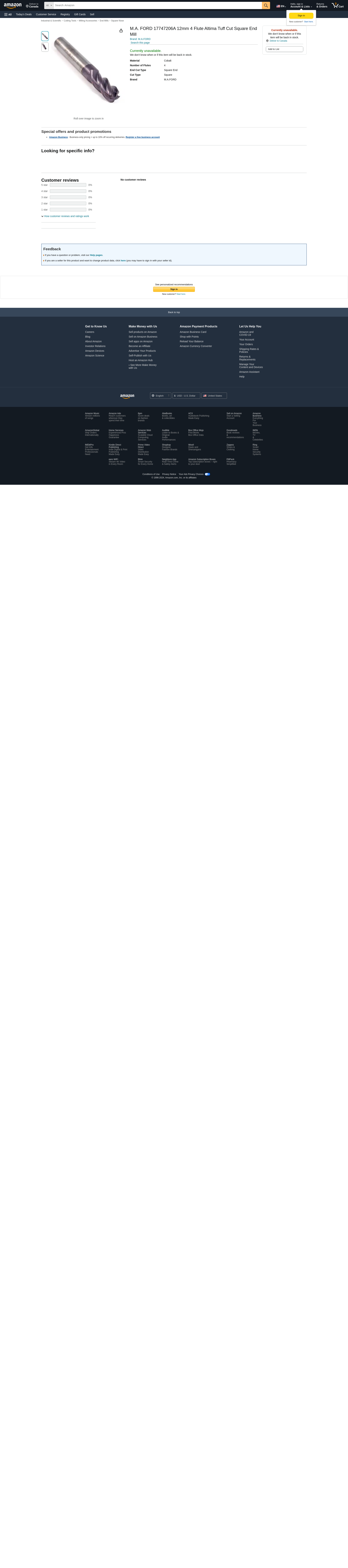 M.A. FORD 17747206A 12mm 4 Flute Altima Tuff Cut Square End Mill