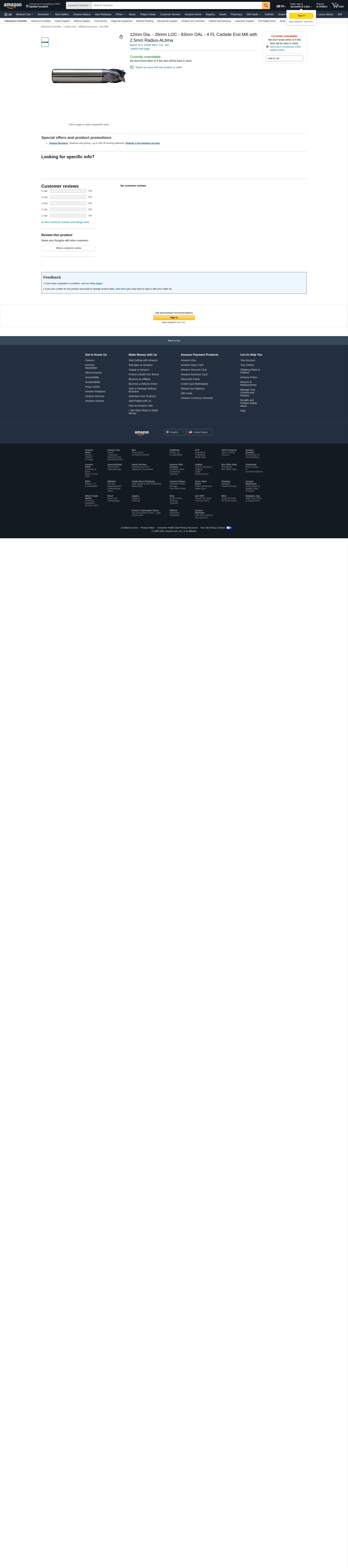 12mm Dia. - 26mm LOC - 83mm OAL - 4 FL Carbide End Mill with 2.5mm Radius-ALtima