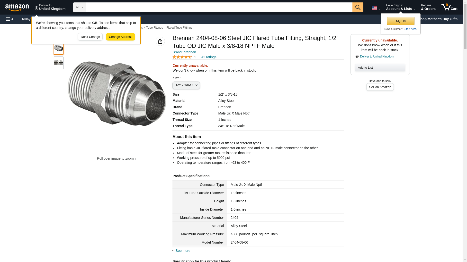 | Airline Hydraulics | BRENNAN 2404-08-06 | 1 | 1 | 1 @ $3.68 | |