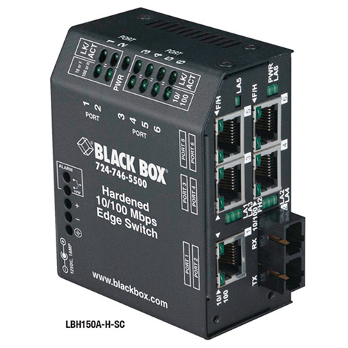 BLACK BOX LBH150A-H-SC-24 Hardened Heavy-Duty Edge Switch, (5) 10/100 Copper + (1) Fiber Ports, Multimode, 24-VDC, SC