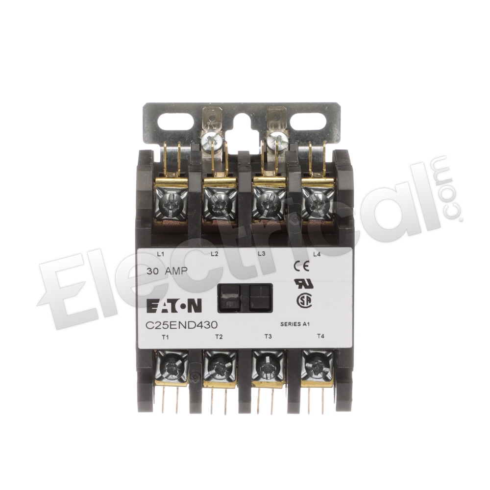 Eaton C25END430H 4 Pole Open Type Non-Reversing Definite Purpose Control Contactor 30 Amp 277 Volt AC