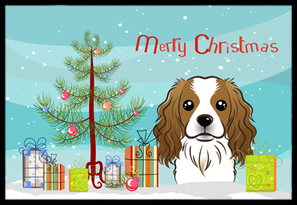 Caroline's Treasures BB1596MAT Christmas Tree and Cavalier Spaniel Doormat 18x27 Front Door Mat Indoor Outdoor Rugs for Entryway, Non Slip Washable Low Pile, 18H X 27W