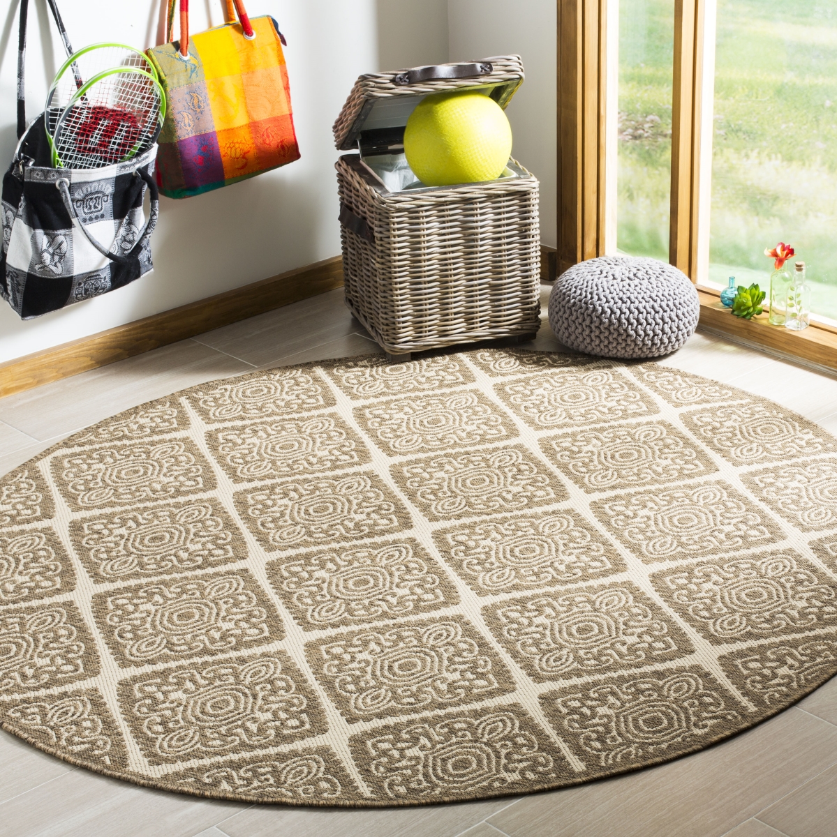 Safavieh LND132C-6R 6 ft. 7 in. x 6 ft. 7 in. Linden 100 Contemporary Round Area Rug, Cream & Beige