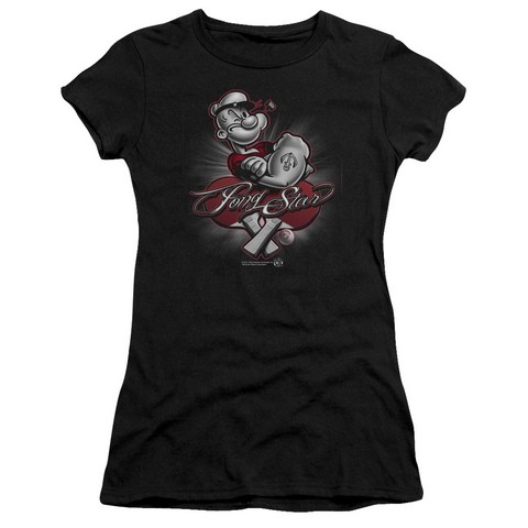 Trevco Popeye-Pong Star Short Sleeve Junior Sheer Tee, Black - 2X