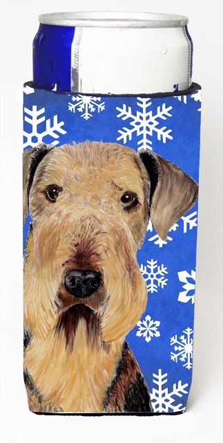 Caroline's Treasures SC9373MUK Airedale Winter Snowflakes Holiday Ultra Hugger for slim cans Can Cooler Sleeve Hugger Machine Washable Drink Sleeve Hugger Collapsible Insulator Beverage Insulated Hold