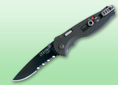 SOG Flash I Assisted Folding Knife TFSA97-CP - Black TiNi 2.5" Partially Serrated Blade, GRN Handle