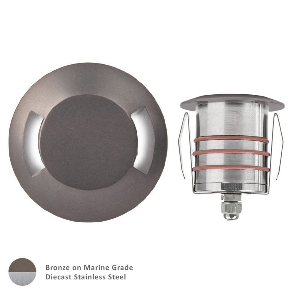 WAC Landscape Lighting, LED 2in 12V Round Beveled Bi-Directional Top Inground Indicator Light 3000K in Stainless Steel Coated with Bronze
