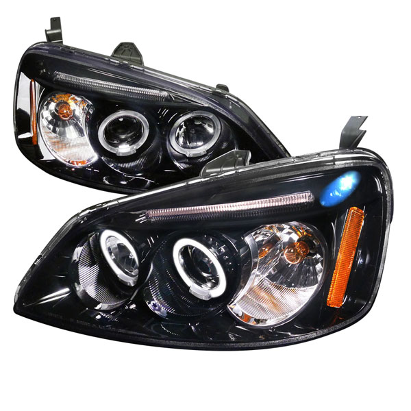 Spec-D Tuning 2LHP-CV01G-TM Honda Civic Dual Halo Led Glossy Black Projector Headlights