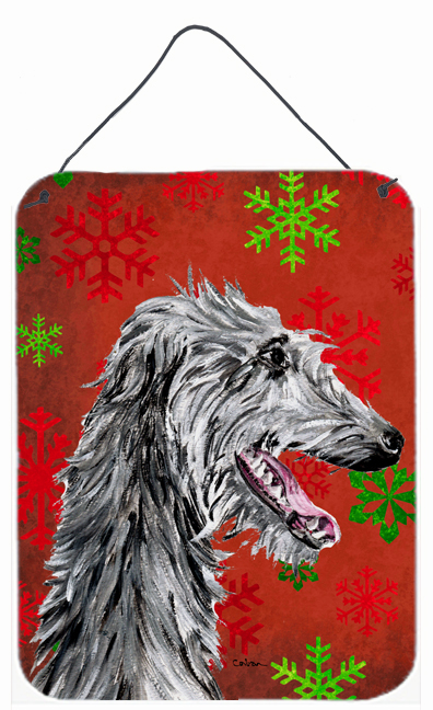 Carolines Treasures SC9765DS1216 Scottish Deerhound Red Snowflakes Holiday Aluminum Metal Wall Or Door Hanging Prints