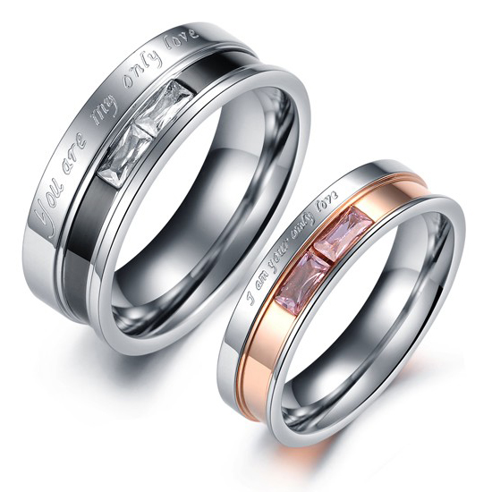 CET Domain SZ17-R094M-8 Titanium Steel Only Love Cubic Zirconia Couple Rings- Men-Size 8