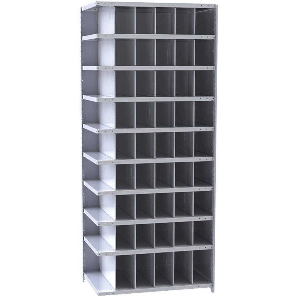 Hallowell A5528-24HG Hi-Tech Metal Bin Shelving, 36" Width x 24" Depth x 87" Height, Add-on Unit (48) 6" Width x 9" Height, (6) 6" Width x 12" Height Bins, 725 Gray
