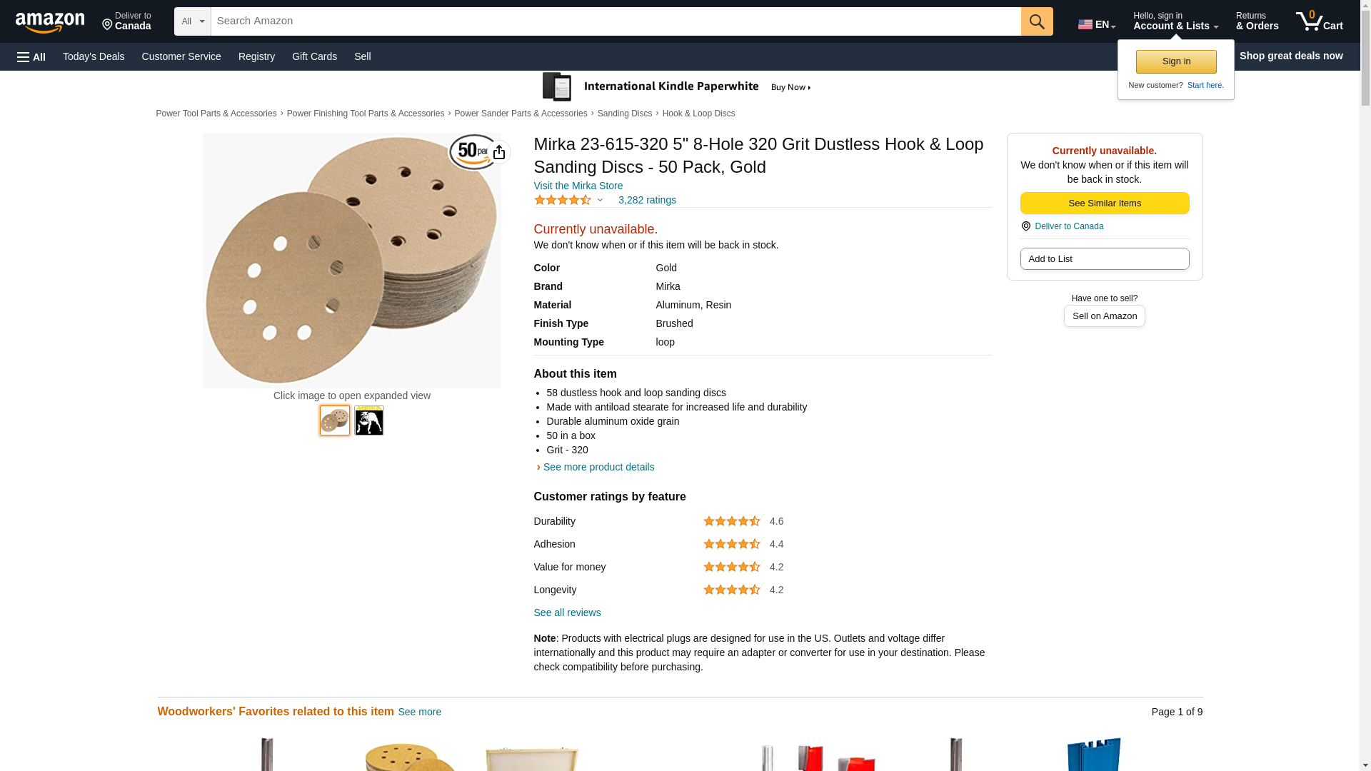 Mirka 23-615-320 5" 8-Hole 320 Grit Dustless Hook & Loop Sanding Discs - 50 Pack, Gold