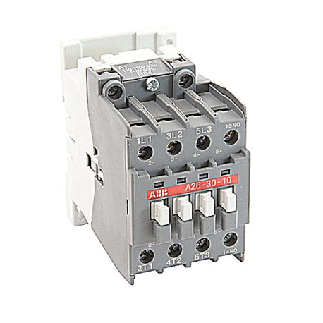 ABB A-Line non-reversing 3-pole contactor has 110 - 120 VAC coil voltage and 28 A at 3-phase, 40 A at 1-phase load current with a power rating of 20 hp at 460/480 VAC 3-phase. Brand Name|ABB#MFR Part Number|A26-30-10-84#UPC|662019879949#UNSPSC|39121529#Item|Contactor#Type|Non-Reversing#Series|A-Line, A26#Coil Voltage|110 - 120 VAC#Full Load Current|28 A at 3-Phase, 40 A at 1-Phase#Power Rating|20 hp at 460/480 VAC 3-Phase, 10 hp at 230/240 VAC 3-Phase, 2 hp at 115 VAC 1-Phase, 10 hp at 230/240 VAC 1-Phase, 7.5 hp at 200/208 VAC 3-Phase, 25 hp at 575/600 VAC 3-Phase#Number of Poles|3#Frequency Rating|50/60 Hz#Contact Form|1 NO#Terminal Type|Screw#Enclosure Type|NEMA 00 - 3#Mounting Type|Snap-On DIN-Rail#Dimensions|3.54 in Height x 2.13 in Width x 3.69 in Depth#Standard/Approvals|CE Certified, CSA LR56745, IEC Approved, UL E39231#Application|For controlling 3-phase motors and for controlling power circuits corresponding to their operating characteristics up to 690 and even 1000 VAC and 440 VDC