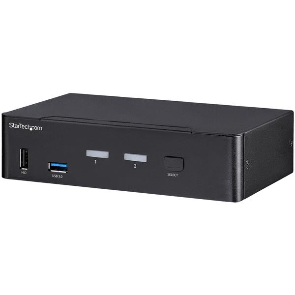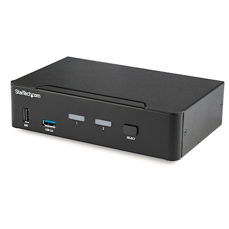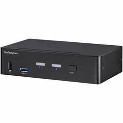 This 2-port KVM switch combines 4K (60Hz) digital display capabilities with control of two connected computers. 4K60 Picture and Full Audio Support The DisplayPort KVM switch supports resolutions up to 4K at 60Hz. It drives one large monitor at the full 4K resolution or, using an MST adapter, can drive various DisplayPort multi-display setups totaling 4K if you need to maximize viewing space. With support for digital audio (with supporting displays and sources) and separate 3.5 mm stereo audio, the DisplayPort 1.2 KVM switch delivers full audio compatibility. Integrated USB Hub The integrated USB 3.0 hub shares two peripherals (in addition to keyboard and mouse) among attached computers as if they were directly connected to your host computer, eliminating the cost of duplicate devices such as printers and scanners. Windows, Mac & Linux Compatible While supporting Windows, this DP KVM switch is also compatible with Mac and Linux operating systems. Easy to Operate The front-panel pushbuttons make it easy to switch between systems and activate the auto scan feature. The hotkey functionality makes accessing each system quickly, while a buzzer sound confirms the switch. StarTech.com?offers?a wide selection of high-quality KVM?switches?and KVM-related products to help you access your systems more efficiently without the expense and clutter of extra keyboards, mice, and monitors.?This?2-port DisplayPort KVM switch?is backed by a?2-year warranty and free lifetime technical support. TAA compliant for government GSA schedule purchases. Increases productivity with ports to connect up to 2 HD multimedia computers. Achieves high picture quality with 4K resolutions @ 60Hz. Eliminates the need to purchase extra equipment with built-in 2-port USB 3.0 hub.