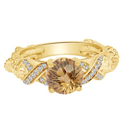 <ul> <li>Crafted - in High-Quality in 14k Yellow Gold Over Sterling Silver With 925 metal stamp that delivers exceptional shine and ultimate protection.</li> <li>Gem Type :- Round Cut Simulated Brown & White Cubic Zirconia Having Clarity Of VVS1-VVS2 In Prong Setting</li> <li>Stone Creation Method :- Simulated</li> <li>It makes any girl feel like a princess, perfect as a special gift give your lovers.</li> <li>We do Custom sizing (Half size also) as per your needs. If The Ring Size is not mention in the listing, Please Email us with your size once you placed the order.</li> </ul>