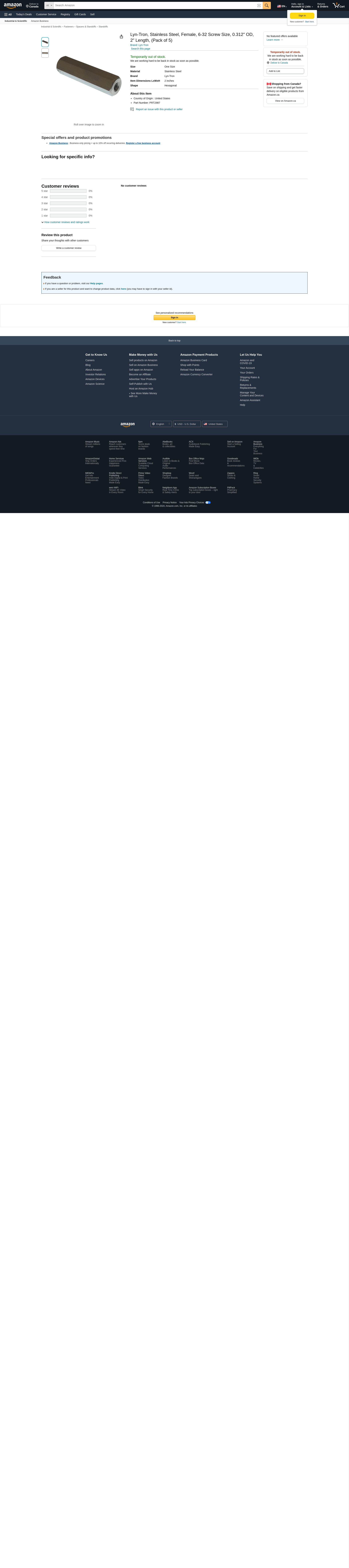Lyn-Tron, Stainless Steel, Female, 6-32 Screw Size, 0.312" OD, 2" Length, (Pack of 5)